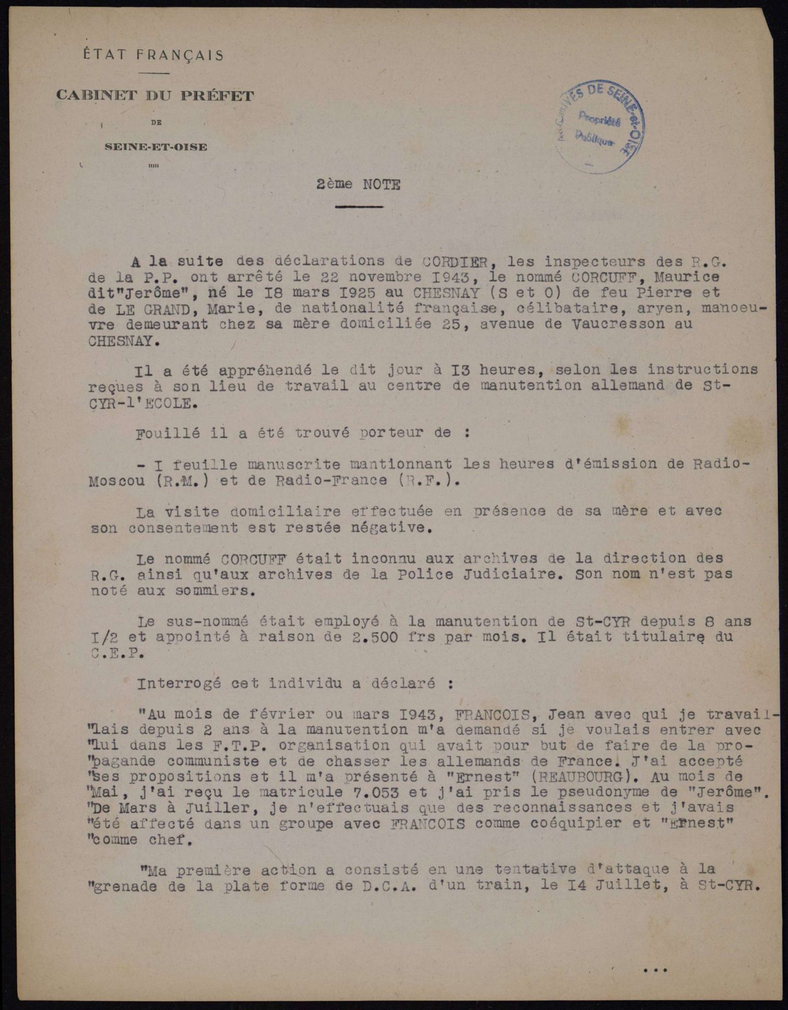 La Résistance en Seine-et-Oise
