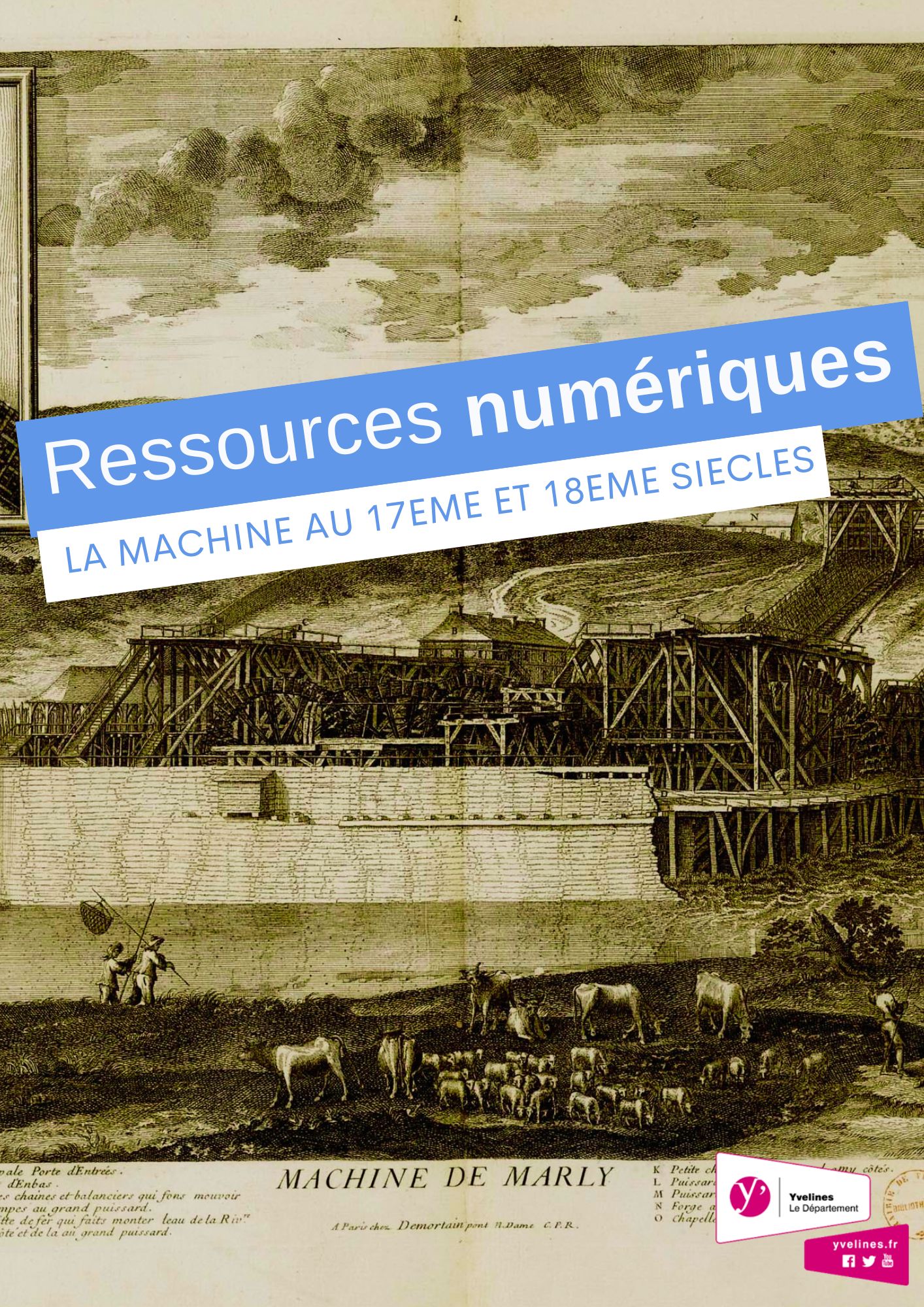 La construction de la machine de Marly est le projet hydraulique le plus ambitieux du 17ème siècle, manifestant ainsi d’une réussite technologique à la hauteur du prestige royal de Louis XIV. Il s’agit de faire gravir à l’eau de la Seine une dénivellation de 126 mètres, jusqu’en haut de la colline de Louveciennes. De là, par gravité, l’enjeu consiste à la guider vers des réservoirs de stockage proches du château de Marly et d'alimenter les bassins de Versailles. Le financier Arnold de Ville et le maître charpentier Rennequin Sualem s’inspirent des techniques minières et métallurgiques pour inventer un outil gigantesque dont le travail se répartit sur trois niveaux. Dans le même temps, Vauban entreprend des travaux importants de maçonnerie et de renforcement des berges pour accroître le débit du fleuve. Dès 1685, l’usage de la machine est presque entièrement réservé au château de Marly.